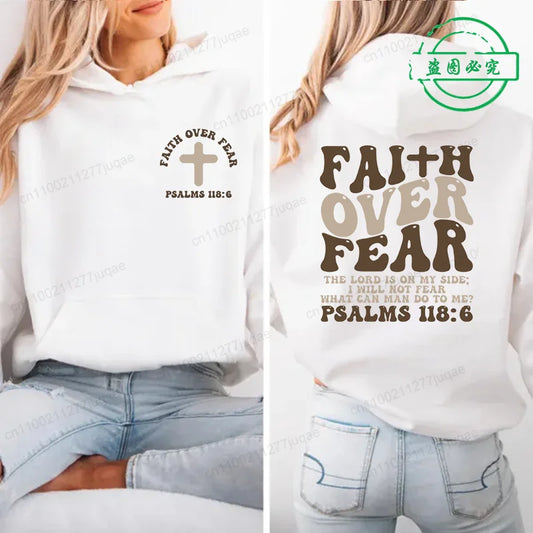 Faith Over Fear Print Sweatshirt Women Harajuku Casual Loose Hooded Bible Verse Jesus Fashion Hoodies Autumn Warm Female Clothes
