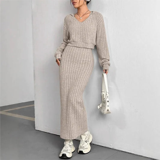 Women's New Fashion Suit Fall Winter Hooded Shawl Long-sleeve Sweatshirt Vest Short Skirt Slim Two-piece Set Suit Women Clothing