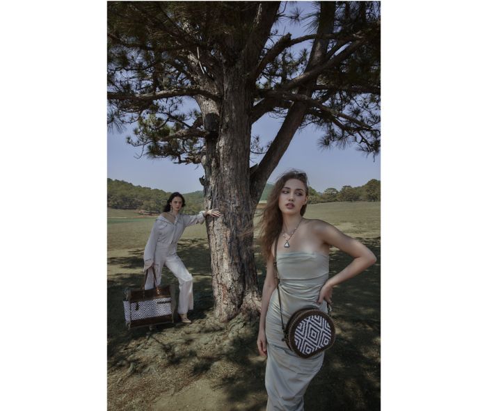 This beautiful bag features the signature upcycled woven rug from our Sand Weaver collection with a striking tribal-inspired pattern. The soothing colors are matched perfectly with special accents in rich chocolate leather. The back and sides are durable olive sandstone woven canvas with a frayed-edge treatment. The roomy interior features a zippered pocket and zipper-close top. Matching durable leather carrying handles..