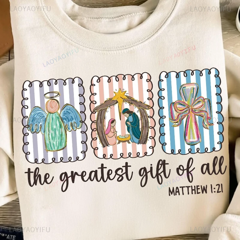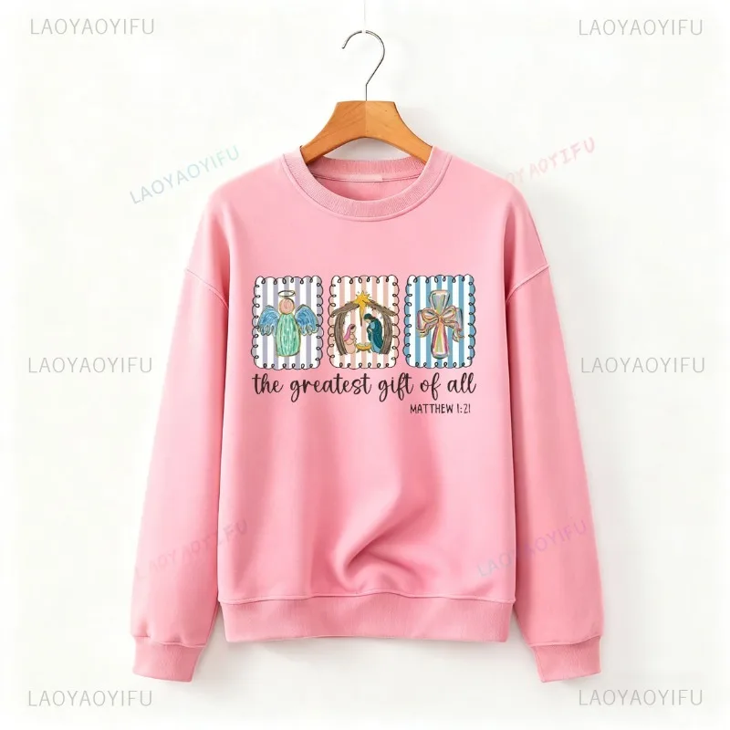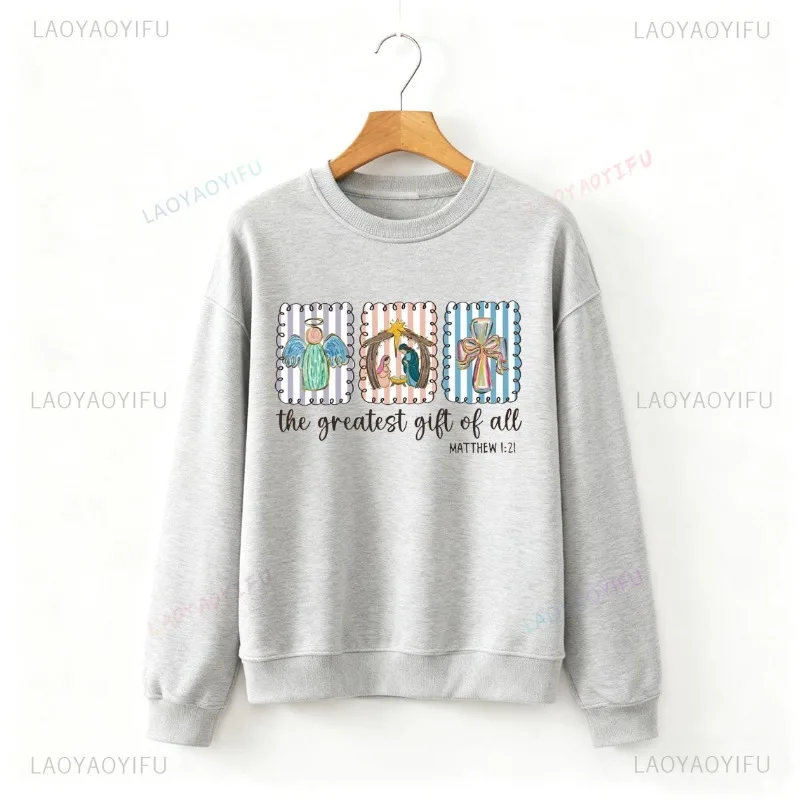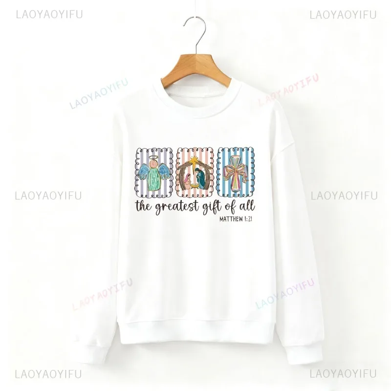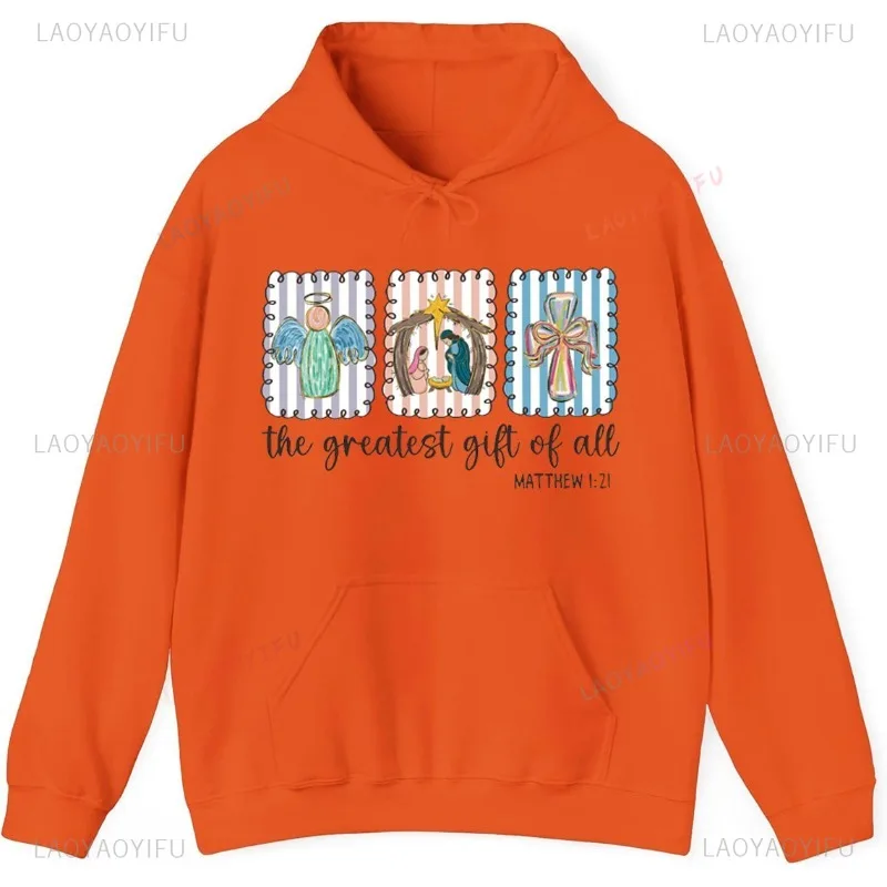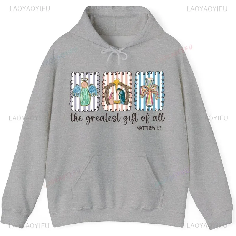 Christian Nativity Scene Faith Christmas Religious Holiday Art Decorative Sweatshirt Long Sleeve Casual Soft Comfortable Hoodie