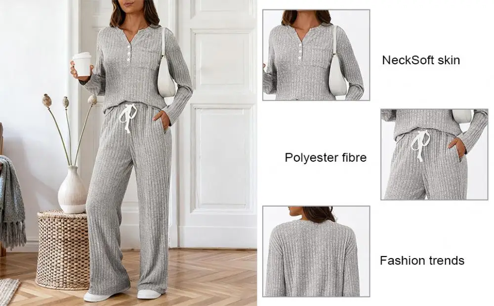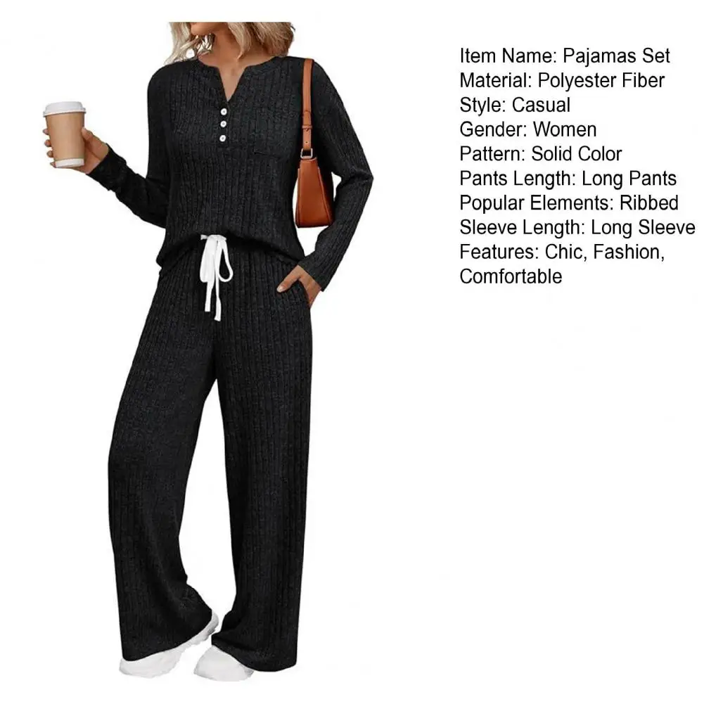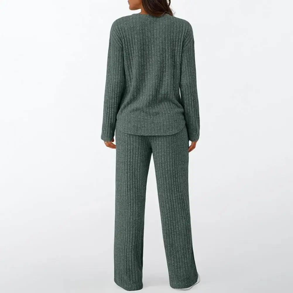 Comfortable Sleep Set Cozy Women's Lounge Sets Long Sleeve Top Wide Leg Pants Pajamas Matching Sweat Suits with for Ultimate