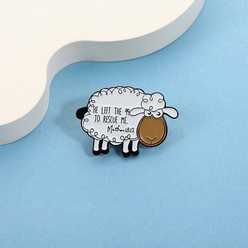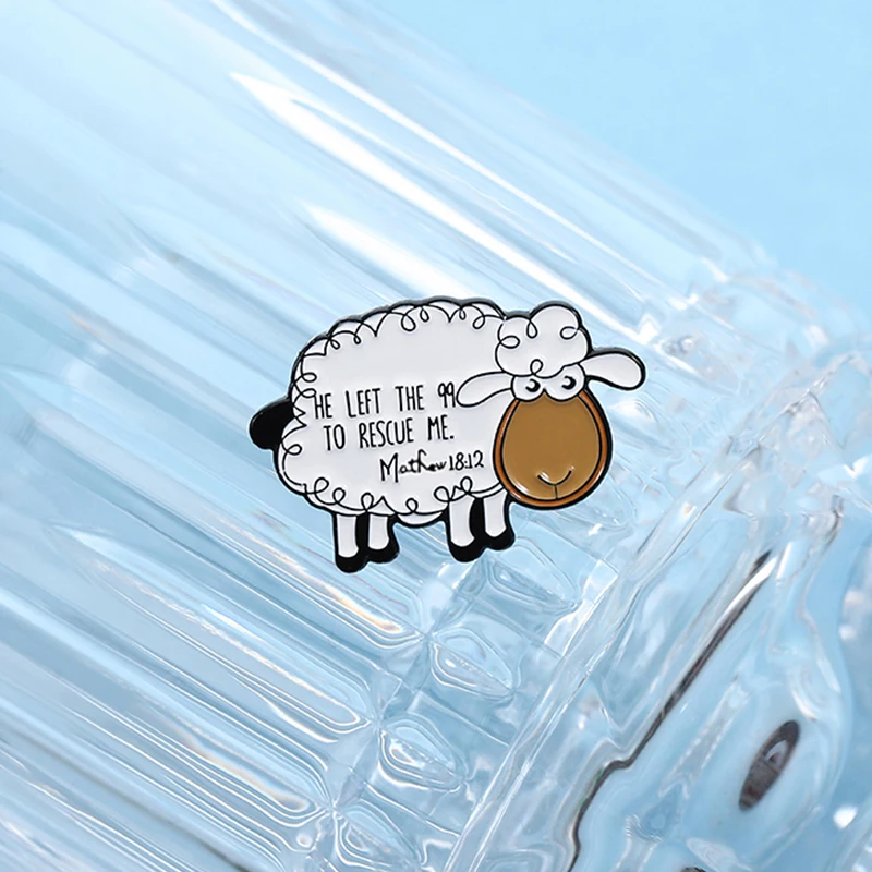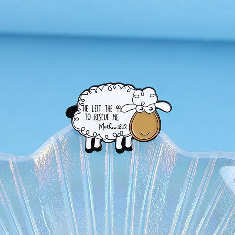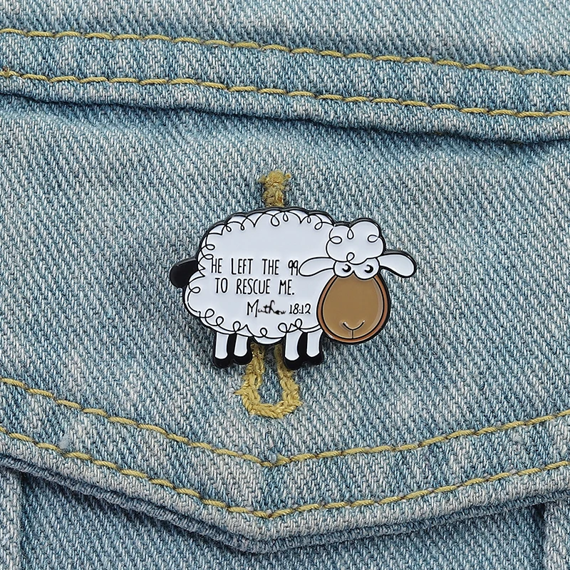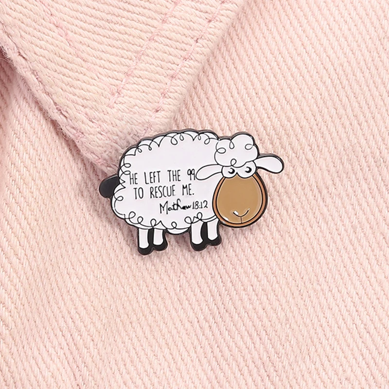 He Left the 99 to Rescue Me Enamel Pin Cute Sheep Lamb Christian Faith Jesus Scripture Religious Brooch Lapel Badge Jewelry Gift