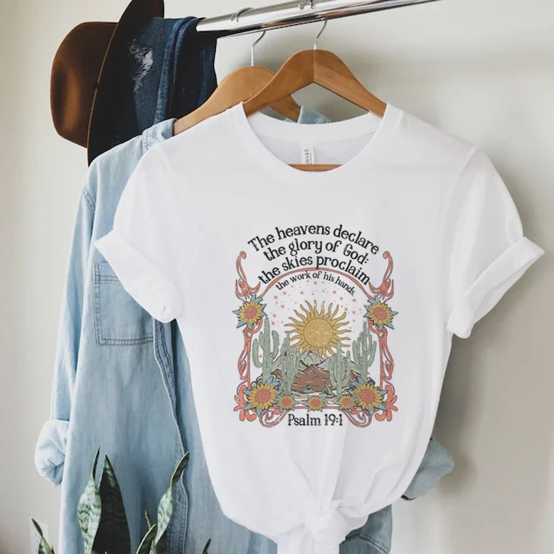 Psalm 19:1 Jesus Faith Graphic T-Shirts Christian Inspirational Tee Vintage Boho Bible Verse Tshirt Religious Clothes for Women