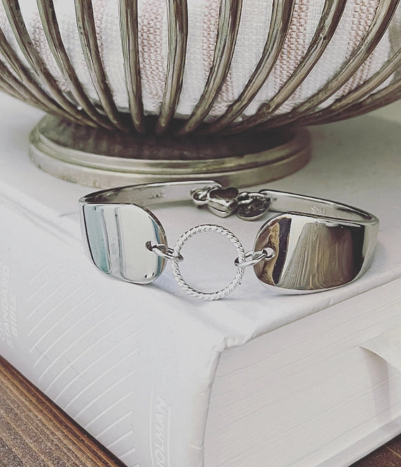 Bracelet made from vintage, recycled silver plated silverware.๐ฅ๐ฅ๐ฅ This style is made from a smooth spoon pattern.๐ธ๐ธ๐ธ Powerful magnetic closure.ย