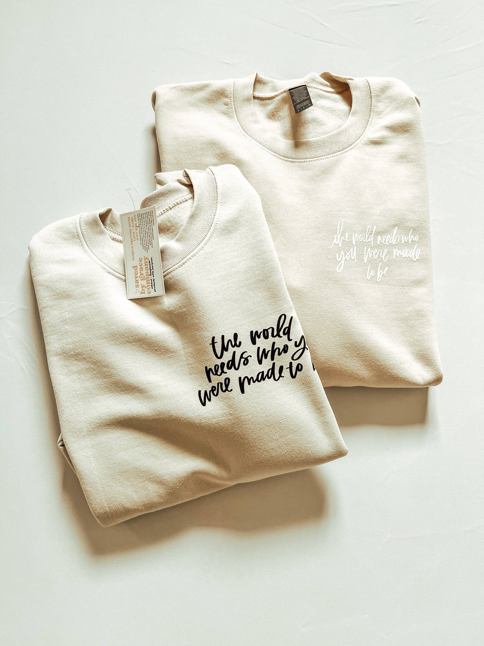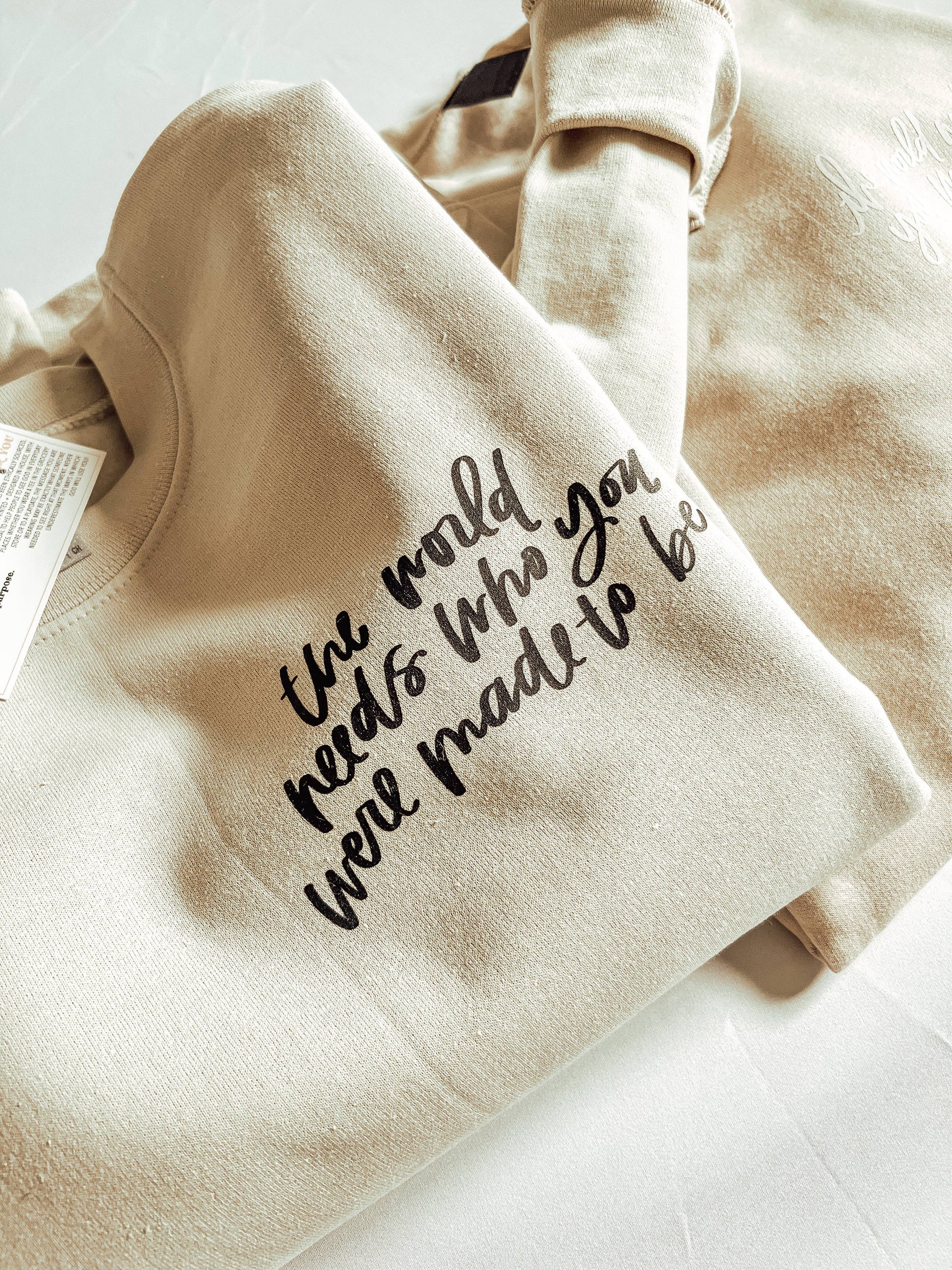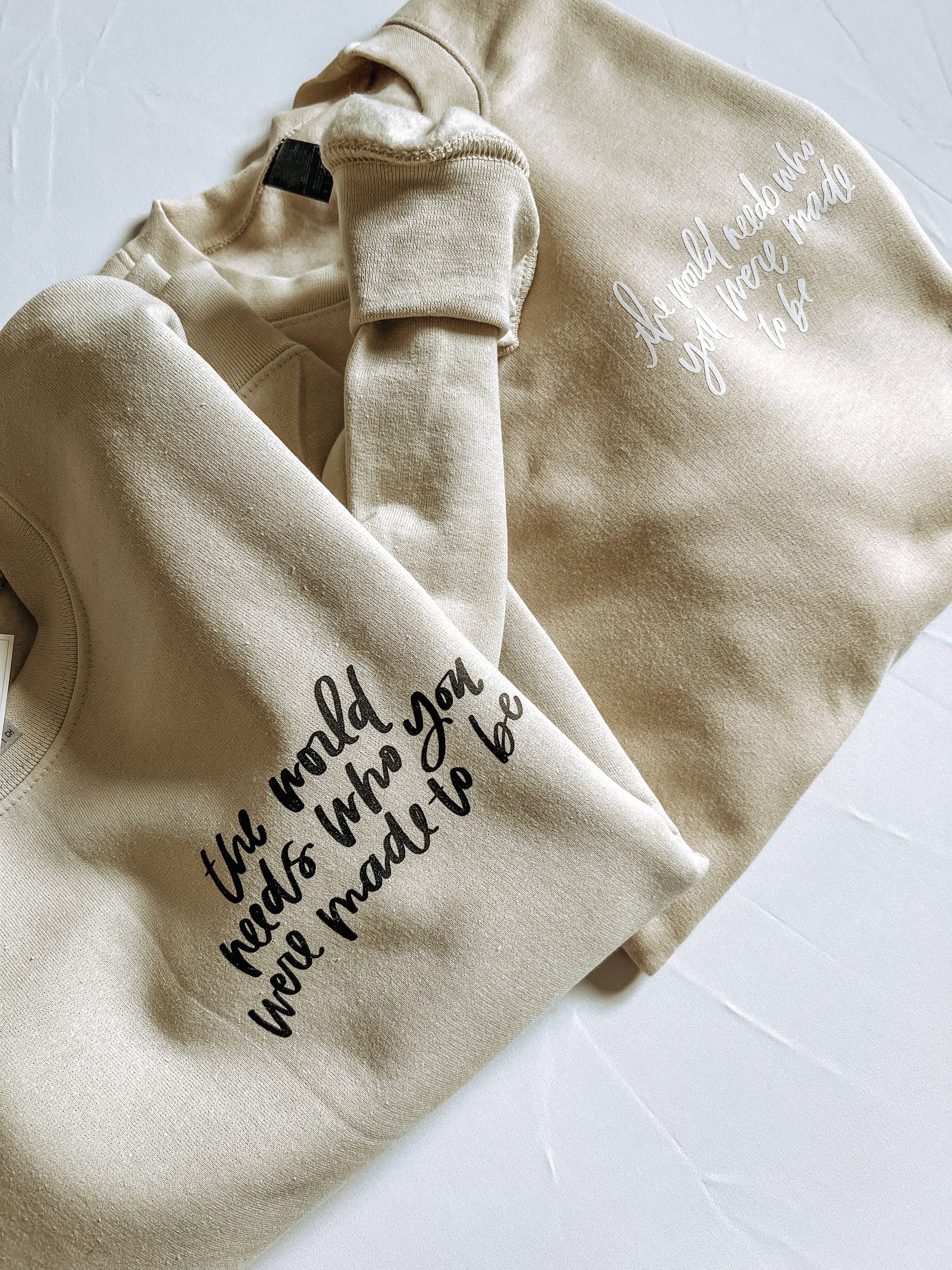 "The World Needs Who You Were Made To Be" The perfect loungewear sweatshirt or cute outfit paired with leggings. This crew neck sweatshirt is a classic cut with long sleeves and a super fuzzy inside! So super soft, you won't want to take it off!